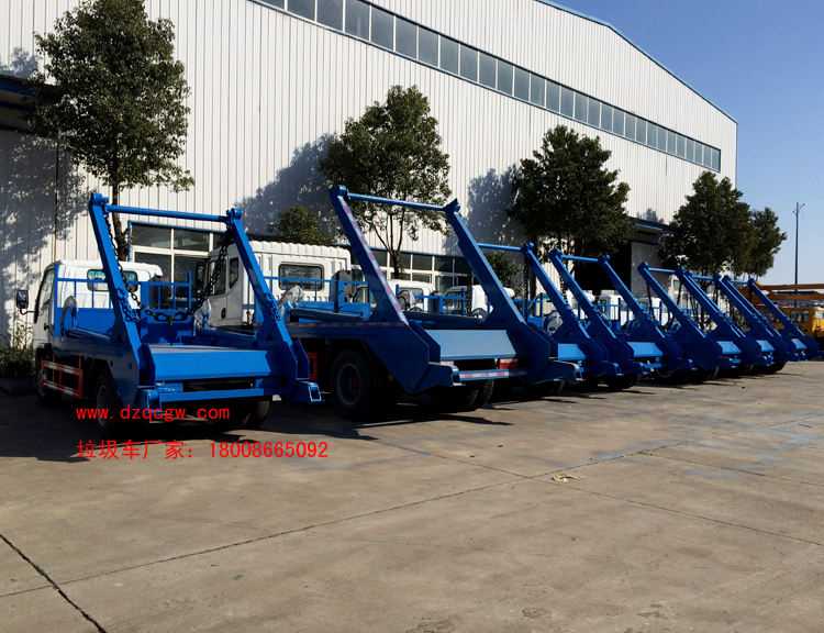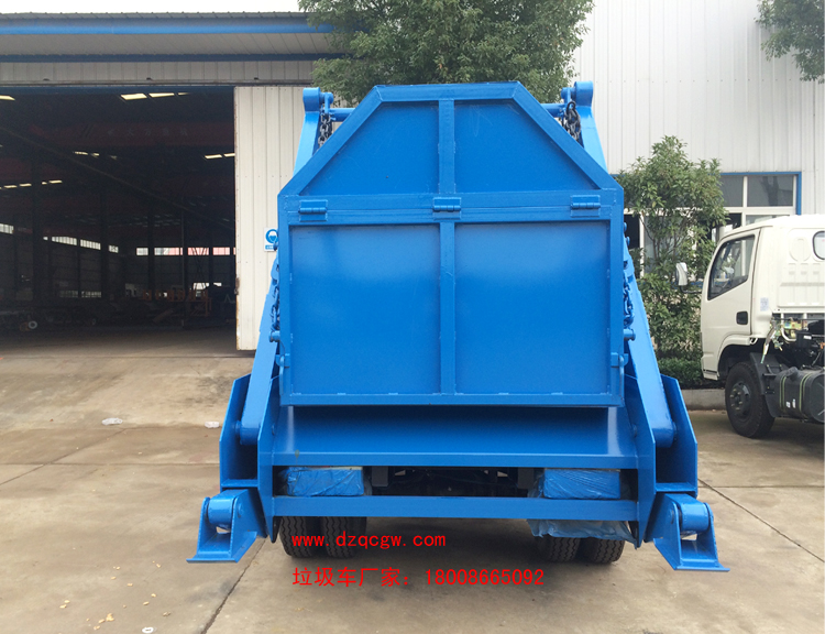 上裝說明: 產品介紹:擺臂式垃圾車加裝統一配套液壓舉升總成,通過左右兩臂裝運全國統一擺臂式垃圾斗,可一車配多廂,帶自卸功能,可自行傾倒垃圾。 可加裝密封蓋,防止泄露飛揚污染,在裝卸的運輸過程中可有效地避免二次污染,以適應不同環境使用要求,該車結構簡單,操作穩定方便,裝卸效率高,機械化程度高,節省人力,采用國內領先技術及軍工企業配件,質量可靠,安全穩定,可由生產廠家為用戶提供垃圾廂圖紙,協助用戶設計垃圾廂。