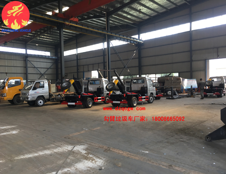 如下圖所示,我公司車間工人們正在調式福田后雙輪勾臂垃圾車,油漆車間300個與之配套使用的2.5方方形標準垃圾斗也在抓緊時間做油漆的涂裝工作及標識的噴貼工作。