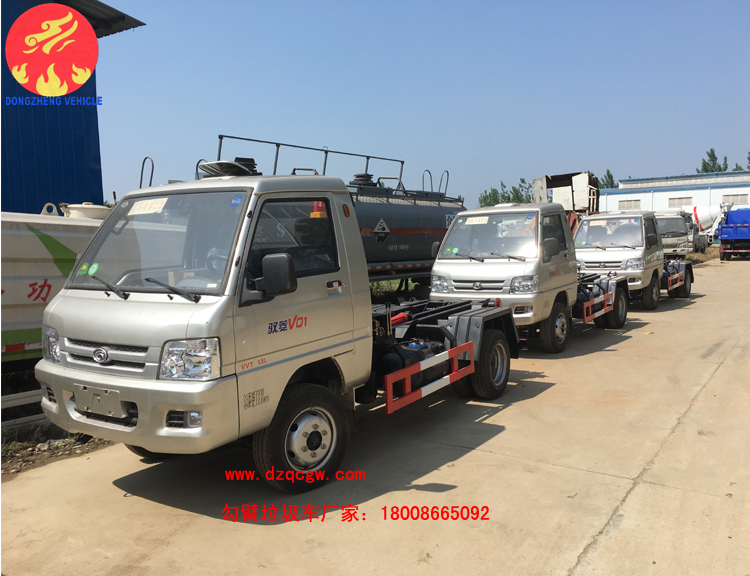 我公司福田馭菱后雙輪勾臂垃圾車整車型號SZD5032ZXXB5,底盤型號BJ1030V5JL3-D5,2566mm軸距,銳展112馬力汽油國五發動機,5檔變速箱,后雙輪。帶液壓系統,雙油缸,控制方式為手動+駕駛室電動操作。
