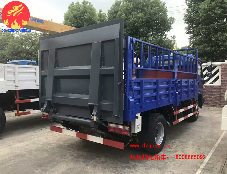 由于人民生活水平不斷提高,為了滿足人們對(duì)垃圾治理的及時(shí)性、徹底性的需求。我公司近期推出一種新的垃圾運(yùn)輸品種即桶裝垃圾運(yùn)輸車。該類型的垃圾運(yùn)輸車為國五排放,整車上藍(lán)牌,可以市內(nèi)小區(qū)內(nèi)穿梭,車廂為倉柵,尾部帶液壓尾板,可一次性處理20-30余桶生活垃圾。大大的提高了垃圾收集的速度。