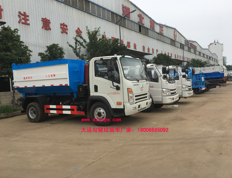 產品介紹:車廂可卸式垃圾車也叫拉臂式垃圾車,是一種采用高新設計可伸縮的鉤臂,實現垃圾廂的二次吊裝,自吊上放下,可自行傾倒垃圾。 該車結構簡單,操作穩定方便,裝卸效率高,機械化程度高,節省人力。一車可帶多個大廂,在裝卸的運輸過程中可有效地避免二次污染。