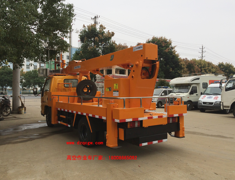 上裝說明:高空作業車,又稱升降車。主要用于電力、通訊、路燈、有線電視,園林,廣告、攝景等。采用進口、國產換向閥及液壓油缸,換向平衡,操作靈活方便,支腿與工作臂互鎖,防止誤操作過位。采用雙液壓舉升油缸,穩定性及安全性更高;可360度旋轉;安裝雙向平衡閥。安裝四支液壓支腿,帶吊鉤,吊鉤吊1噸;上下均帶操作系統,選裝電控。