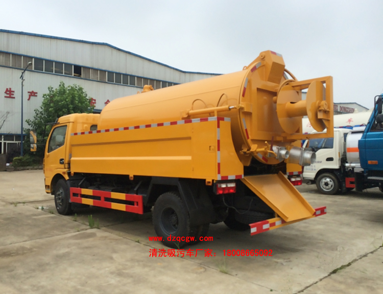 吸污部分主要配備:國產(chǎn)多路閥、油缸;國產(chǎn)高質(zhì)量真空泵,油水分離器,四通閥,洗手裝置。罐體后封頭球閥控制自流口1個,1個視污窗,1根7米吸糞管,普通油漆。一次性成型舉升式罐體,罐體兩則油缸,后蓋液壓開啟,機械鎖緊,帶液位報警。主要用于下水道、雨水井、檢查井、化糞池及各種溝渠內(nèi)的污泥、糞便或石油化工廠污水池淤積物的抽吸、裝運和排卸。