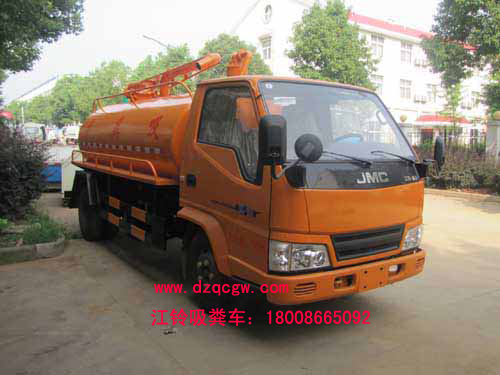 底盤說明江鈴單排可翻轉駕駛室,國五江鈴115馬力柴油發動機,7.00鋼絲胎,油剎,五檔箱,后橋4噸,帶排氣制動,ABS。該車主要用于吸排糞便,罐體有效容積: 4.41立方米,介質:液態污物,罐體外形尺寸(長×長軸×短軸)(mm):3600×1650×1100