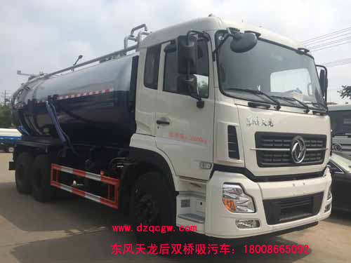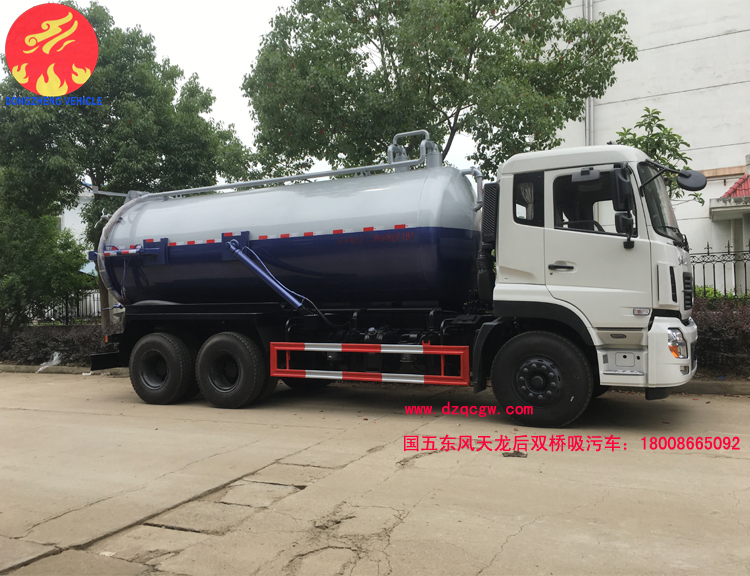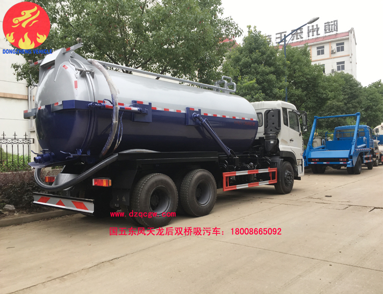 底盤說明:東風天龍后雙橋底盤,國五康明斯發(fā)動機,7T前橋,10噸后橋,陜齒9檔變速箱,11.00R20鋼絲胎,帶空調,ABS。該車用途為吸污,主要裝置為污罐.罐體有效容積:15.48立方米,介質:液態(tài)污物,罐體外形尺寸(直段長×直徑)(mm):5600×1950,5300×1950.選用4350+1350mm軸距。 |
