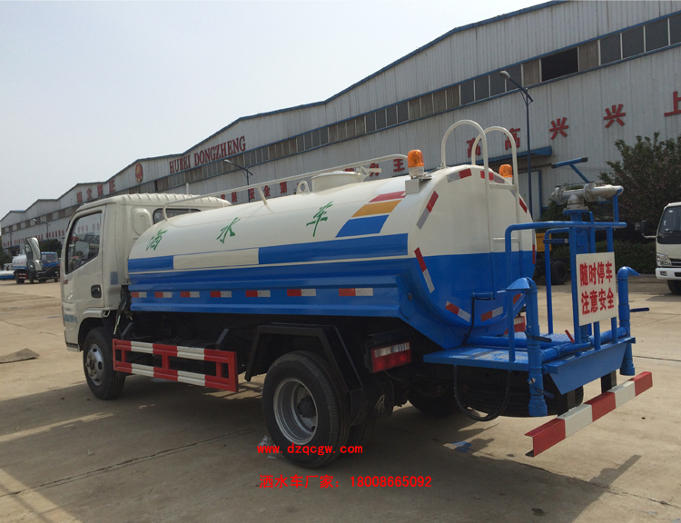 改裝部分:標配前沖、后灑、側噴、工作平臺、綠化高炮、自流閥、消防接口,輸水管3米2根,8噸以上罐體帶高位花灑2個,億豐泵或金龍泵,控制方式為手動。選裝氣動閥門控制;高位花灑,大鴨嘴,藥盤,罐體側面加裝萬向可調節噴頭,罐體后部壓塵噴灑裝置,兩個圓警燈或長警燈,LED箭頭燈,泵可選裝威龍泵或農藥噴霧裝置。